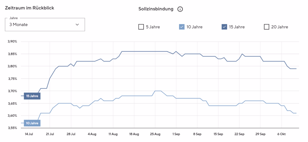 Die Zinsen für 10- und 15-jährige Finanzierungen kletterten auf neue Höchststände, bewegten sich im September seitwärts und gaben Anfang Oktober erfreulicherweise wieder nach.